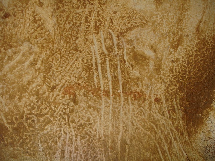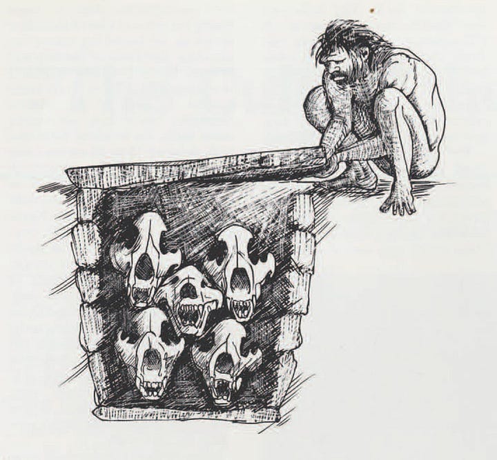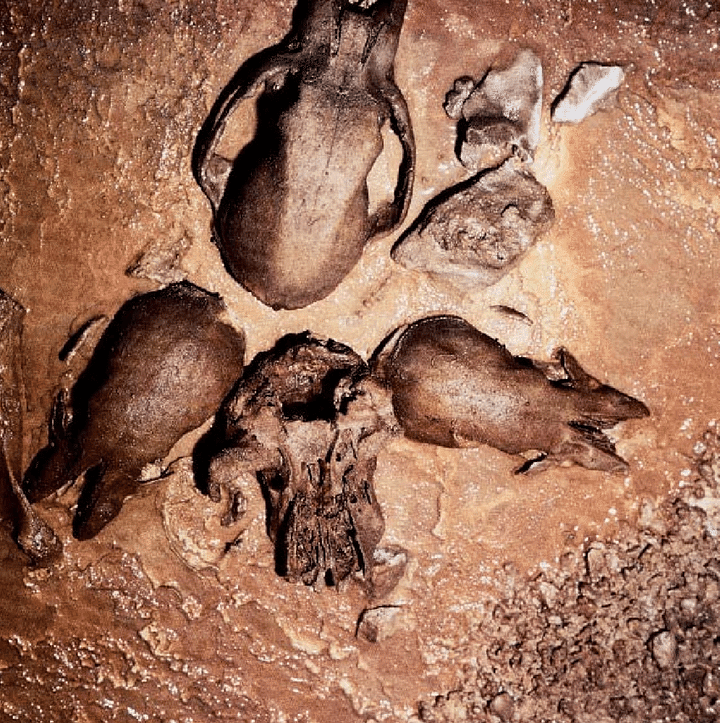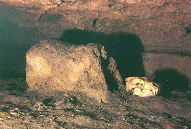 The first clear argument for a Paleolithic bear cult came from Swiss archaeologist Emil Bächler. In the early 20th century, while excavating Drachenloch cave, he uncovered stone-lined niches holding cave bear skulls, some neatly arranged as if for display. At Regourdou in France, a Neanderthal was buried alongside bear bones and stone tools. In Chauvet, famous for its painted lions and mammoths, cave bear claw marks run across the walls—even over some of the oldest art. The pattern is hard to ignore: repeated, deliberate encounters with the bear, and signs that its remains were treated with special care.